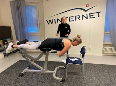 – I griptestet märker vi att de som jobbar med hästsporten använder händer och överkropp i det dagliga arbetet. När det gäller ryggtestet och konditionen finns det en hel del att förbättra, säger Marie Eriksson, idrottsvetare Winternet.