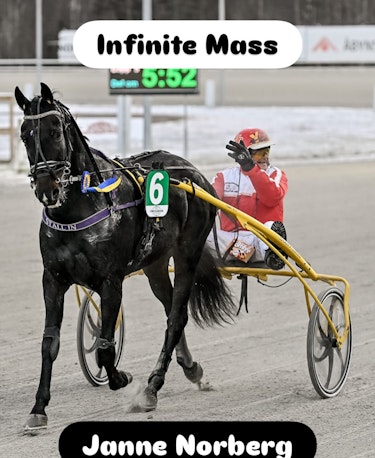 Madelene Wikstén-tränade Infinite Mass visade förra vintern att hästen inte direkt vantrivas när temperaturerna kryper ner. Och peppar, peppar ser det ut som att Bird- Parker sonen går mot ännu en fin vintersäsongen. Janne Norberg satte full fart från tredjepar utvändigt och fick ett fint svar från hästen som enkelt kunde avväpna konkurrenterna sista biten.